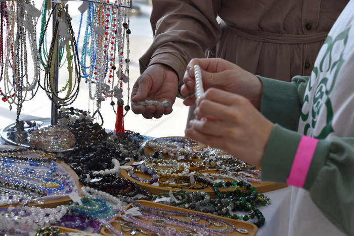 В фойе перед павильонами гостей ждали разнообразные выставочные и торговые площадки, в том числе уникальная экспозиция «Абыстайлар хәзинәсе» – «Сокровищница абыстаек». Здесь мастерицы Татарстана демонстрировали свои умения в изготовлении национальных изделий: от кожевенных и меховых аксессуаров до изящных украшений и текстиля.