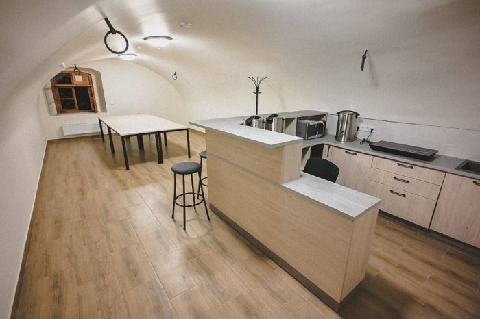 Восстановлены столярные заполнения окон и дверей, при этом были воссозданы рисунок и конфигурация исторических заполнений. Кроме того, выполнена реставрация кованых элементов, таких как оконные решетки, металлические двери и ставни, а также установлен аутентичный кованый навес. Также проведена реставрация и восстановление интерьеров.