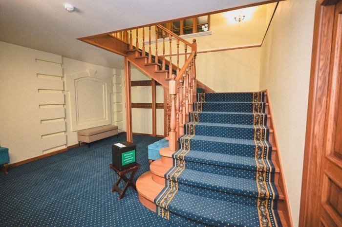Был проведен комплексный ремонт и реставрация штукатурного покрытия стен и сводов в интерьерах, включая восстановление лепного декора, таких как профилированные наличники, потолочные тяги и лепные розетки потолков. Также выполнены работы по окрашиванию интерьеров с учетом исторического цветового решения, а также замене и ремонту напольных покрытий.